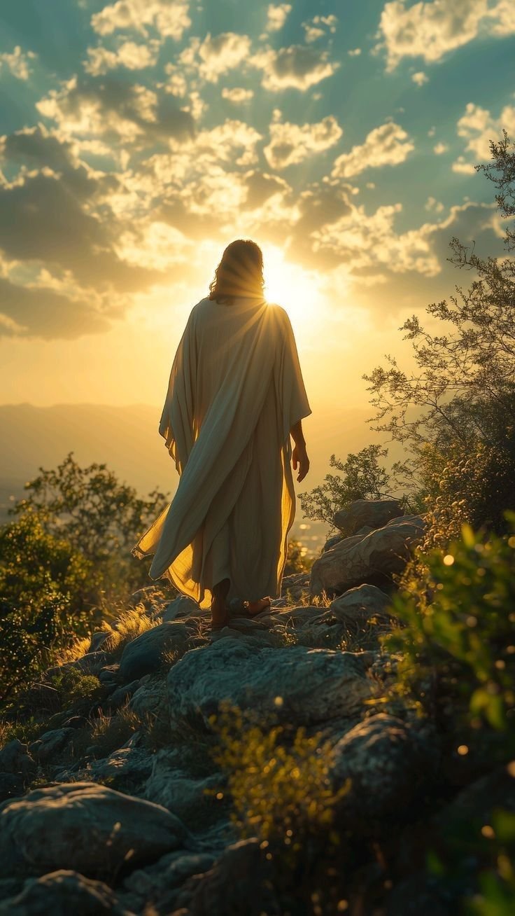4 : Alors que ses proches prient et pleurent lors de la mise au tombeau, après l’avoir oint, l’enseigneur avant de remonter vers son Père, et retrouver son corps de gloire, delivré et récompensé après avoir tant souffert et libéré, étreint le monde à nouveau pour l’éclairer.